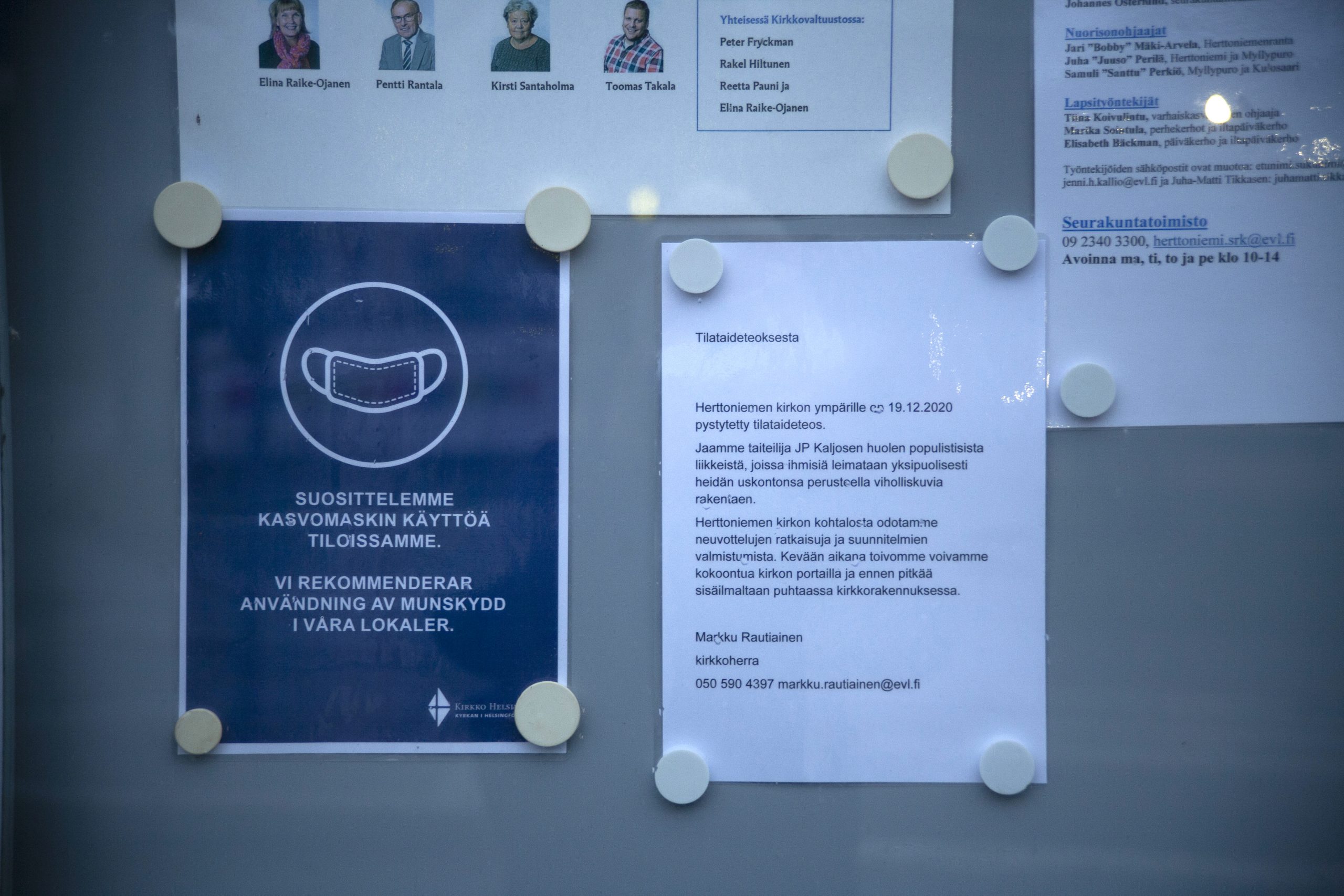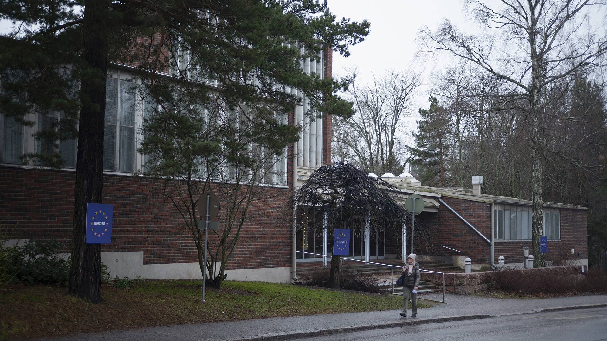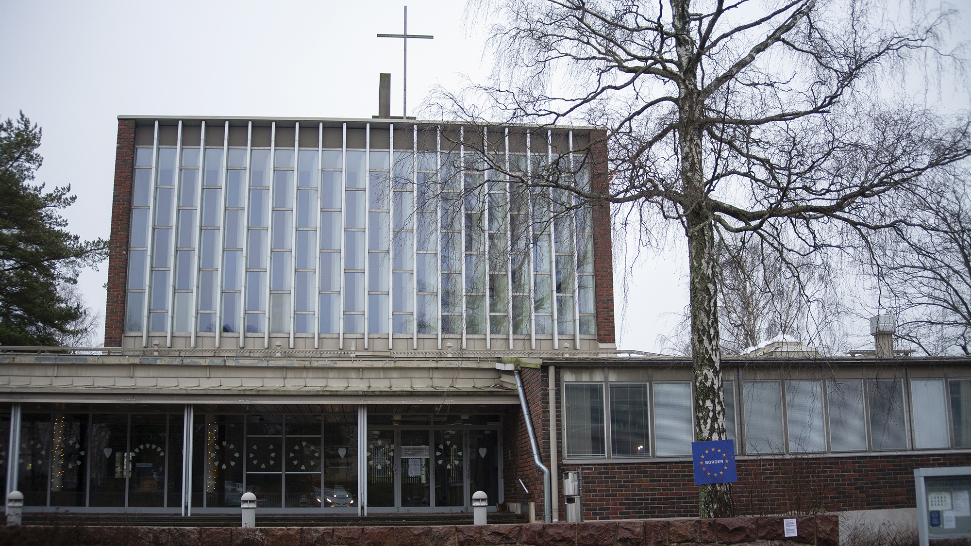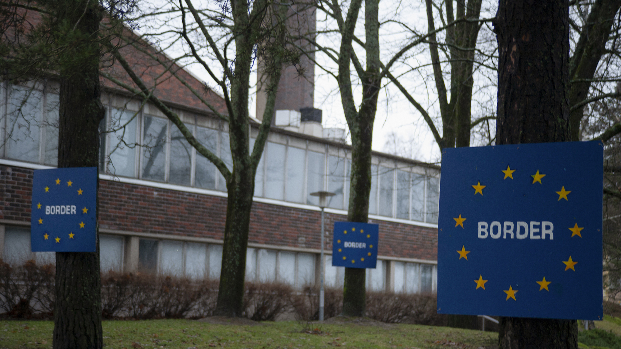 In the installation, Herttoniemi Church, abandoned due to air quality issues, is encircled by European Union border signs. In the work, the church left by the congregation and the surrounding EU border are juxtaposed with political movements dressed in the clothes of Christianity and their ominous threat-constructing policies in Europe